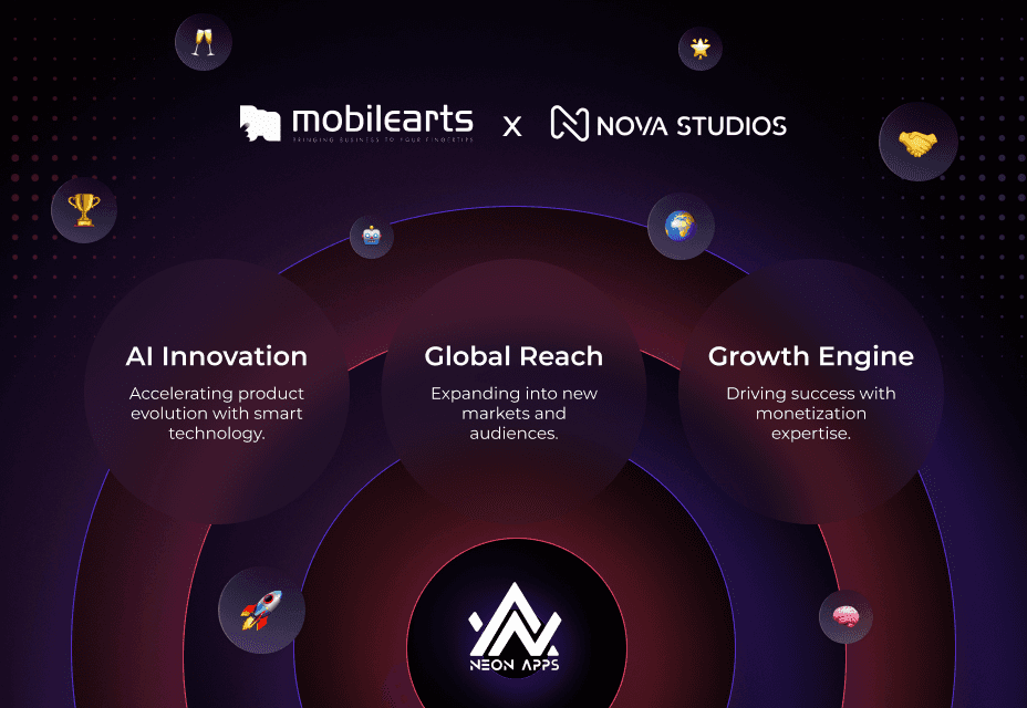 Neon Apps is proud to announce that Nova Studios, one of the innovation units originally founded within our organization, has been acquired by Mobile Arts, a global leader in mobile content, fintech solutions, and digital monetization. This strategic acquisition marks an important milestone for both companies and highlights the strength of Neon Apps’ product development vision.
