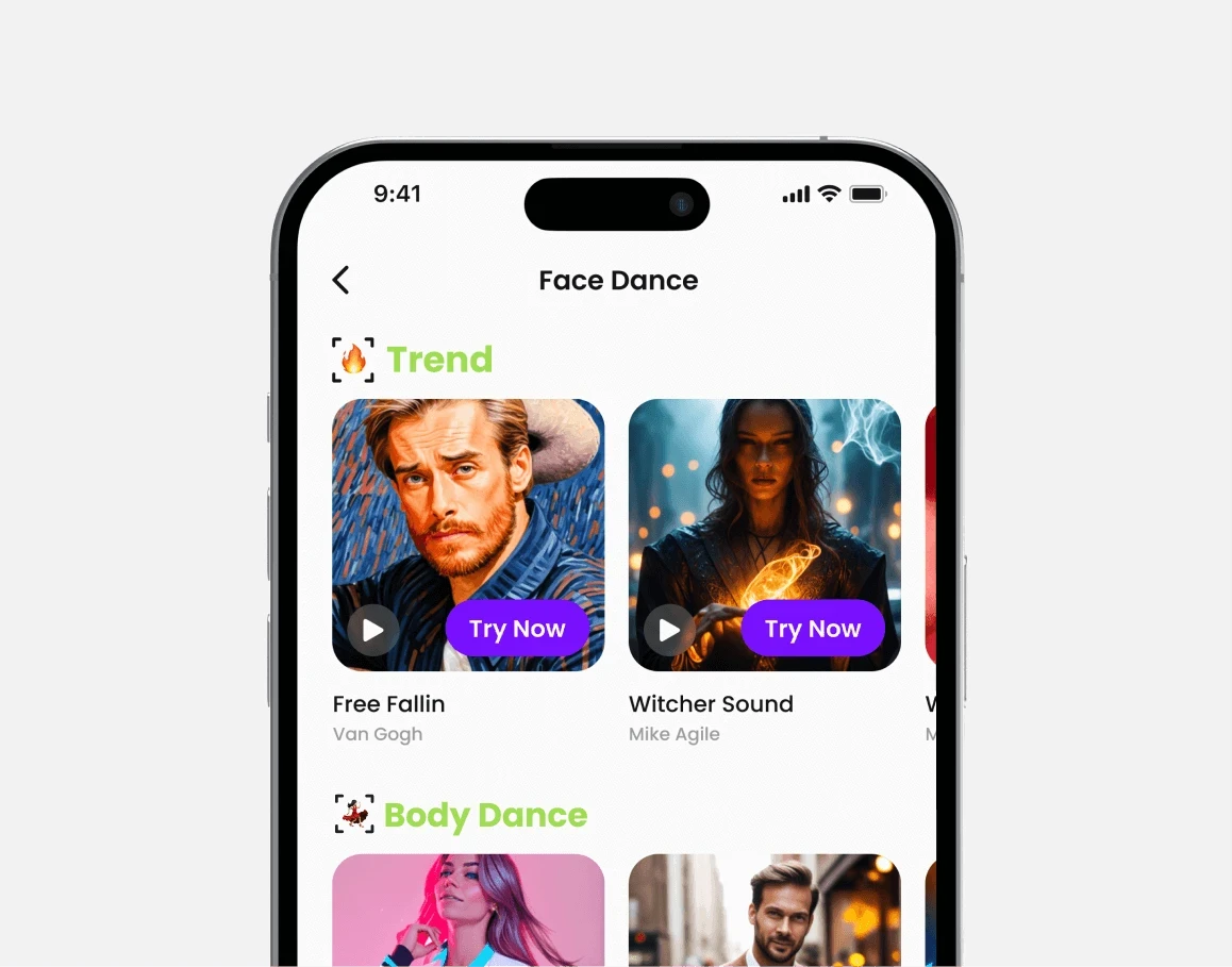 AI Face Dance was created to make video creation fun and simple for everyone. The client wanted a mobile app where users can see their faces come to life through AI animation synced with music. We built a playful experience for iOS and Android that lets users create dance videos quickly without editing skills.