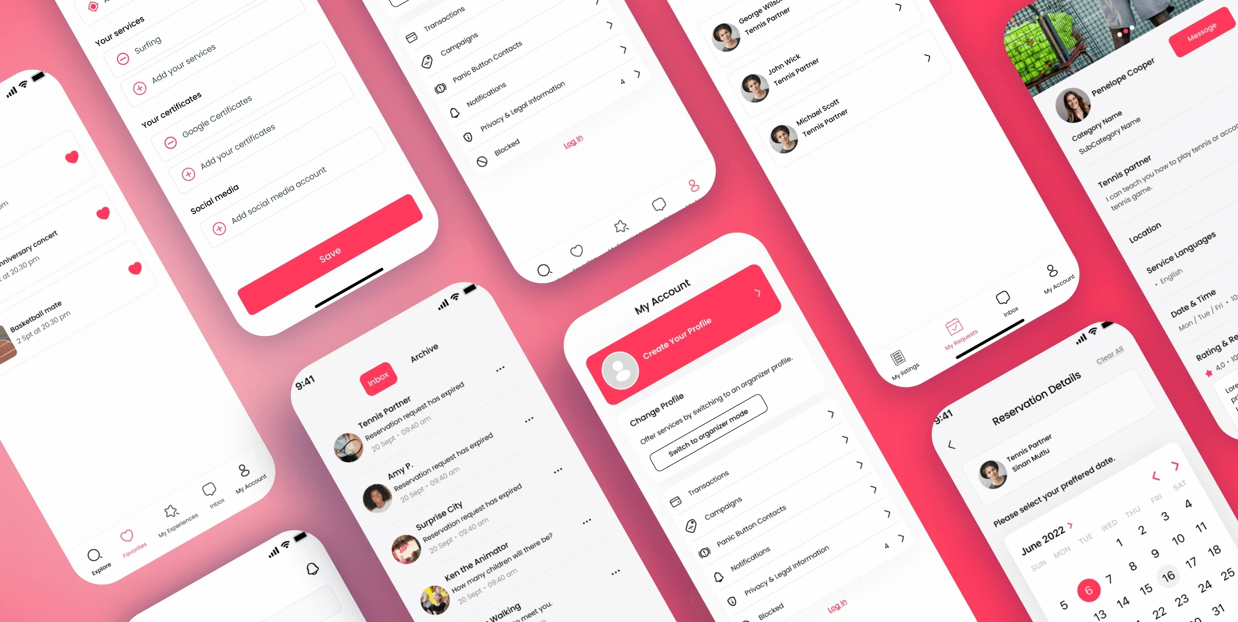 We designed Frent as a two-sided platform. Users can look for help as seekers or switch to organizer mode to offer services or host events. Cards show nearby options such as coaching, pet care, or games with photos and short descriptions. Reviews and safety features create trust before any meetup happens.