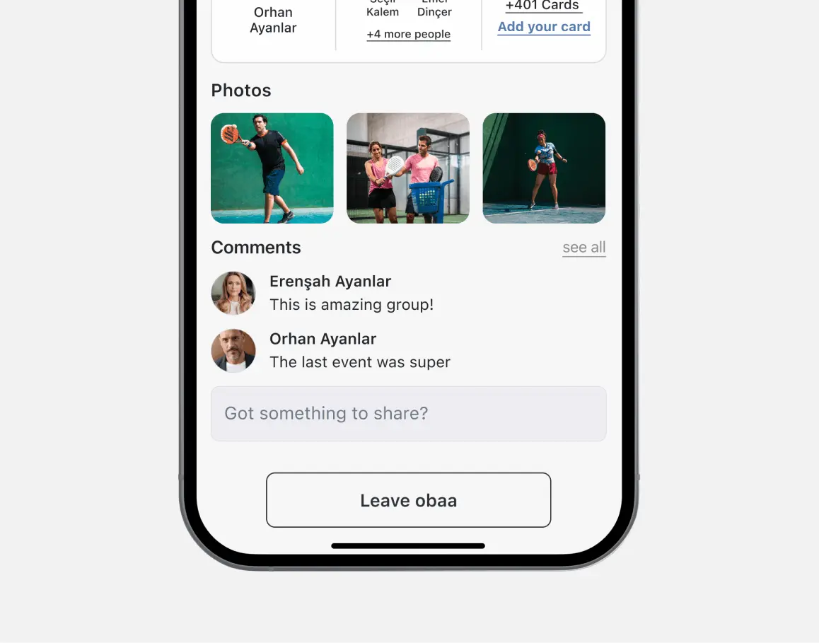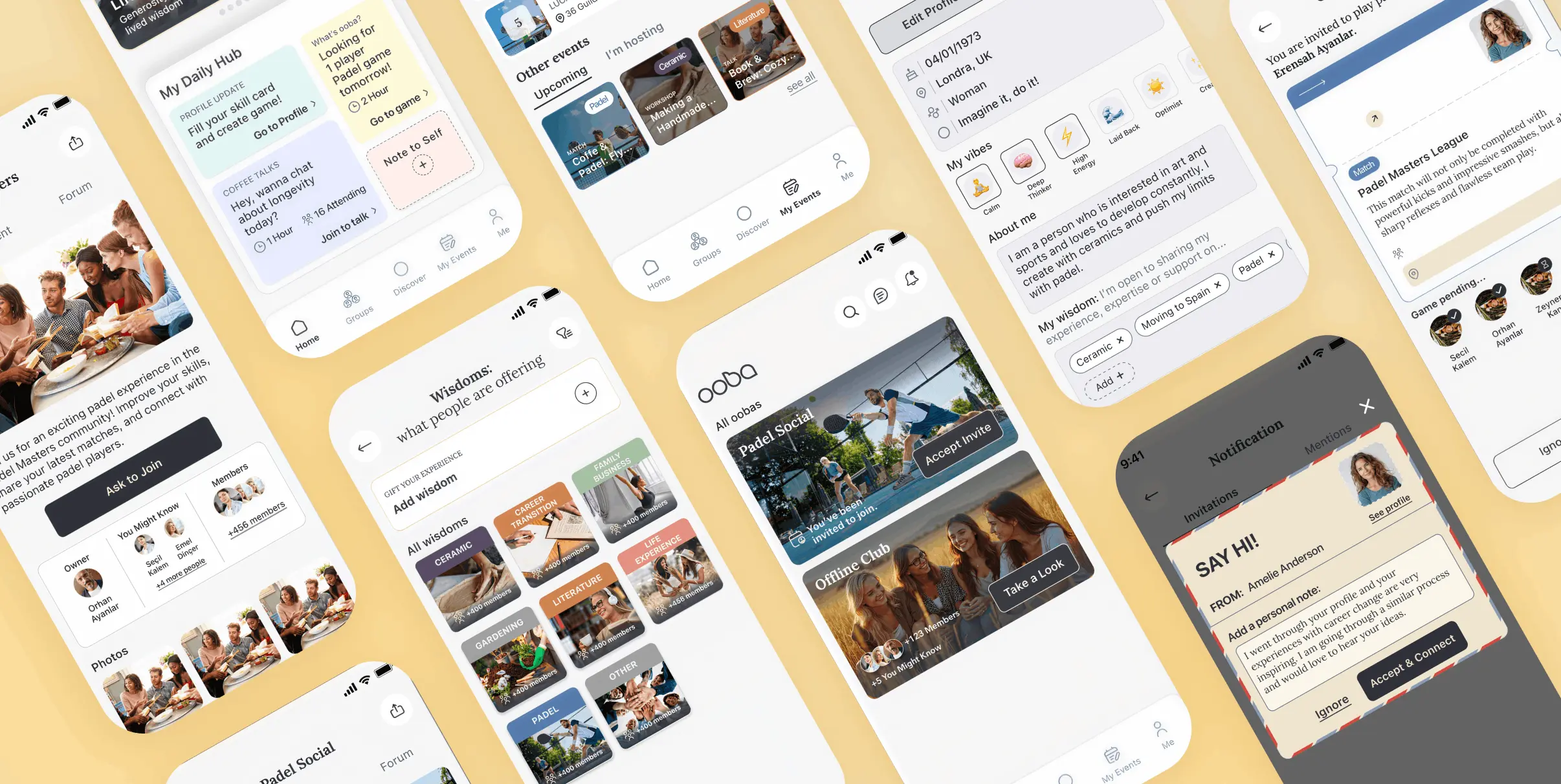 We designed Ooba so users can find groups, discover activities, and share insights in a simple flow. Profiles highlight interests. The home screen shows events and discussions that match what users care about.